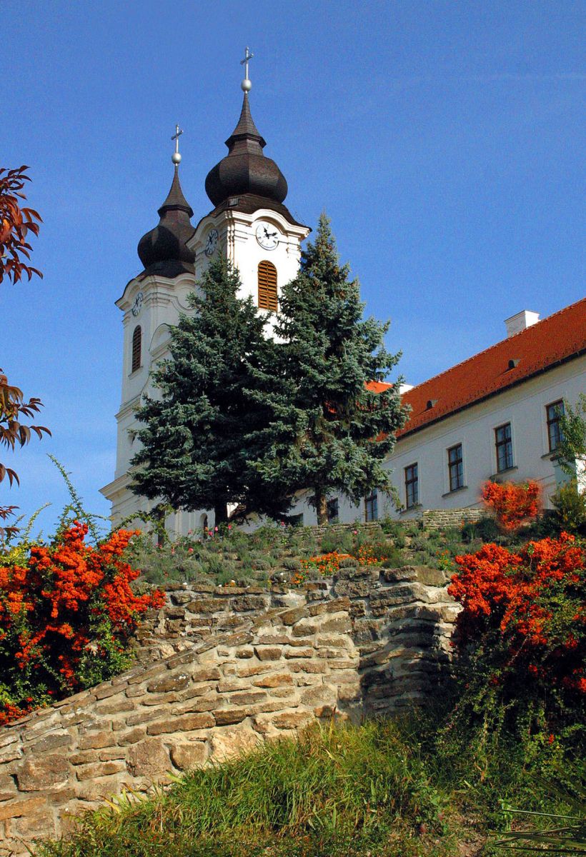 A Tihanyi Bencés Apátság a település közepén magasodó domb tetején található. I. András király 1055-ben alapította a monostort és családi temetkezési helyet. Az apátság latinul írt alapító levele a legrégebbi ránk maradt magyarországi oklevél. I. András király az apátságnak több falut, tavakat, határrészt és egyéb javakat adományozott. Az oklevél felsorolja ezeket, és elsőként tartalmaz összefüggő magyar nyelvű szövegrészletet, magyar hely- és személyneveket. Öccsével - a későbbi I. Bélával  - a koronáért vívott testvérharcban 1060-ban bekövetkezett halála után a tihanyi apátság román stílusú altemplomában temették el.